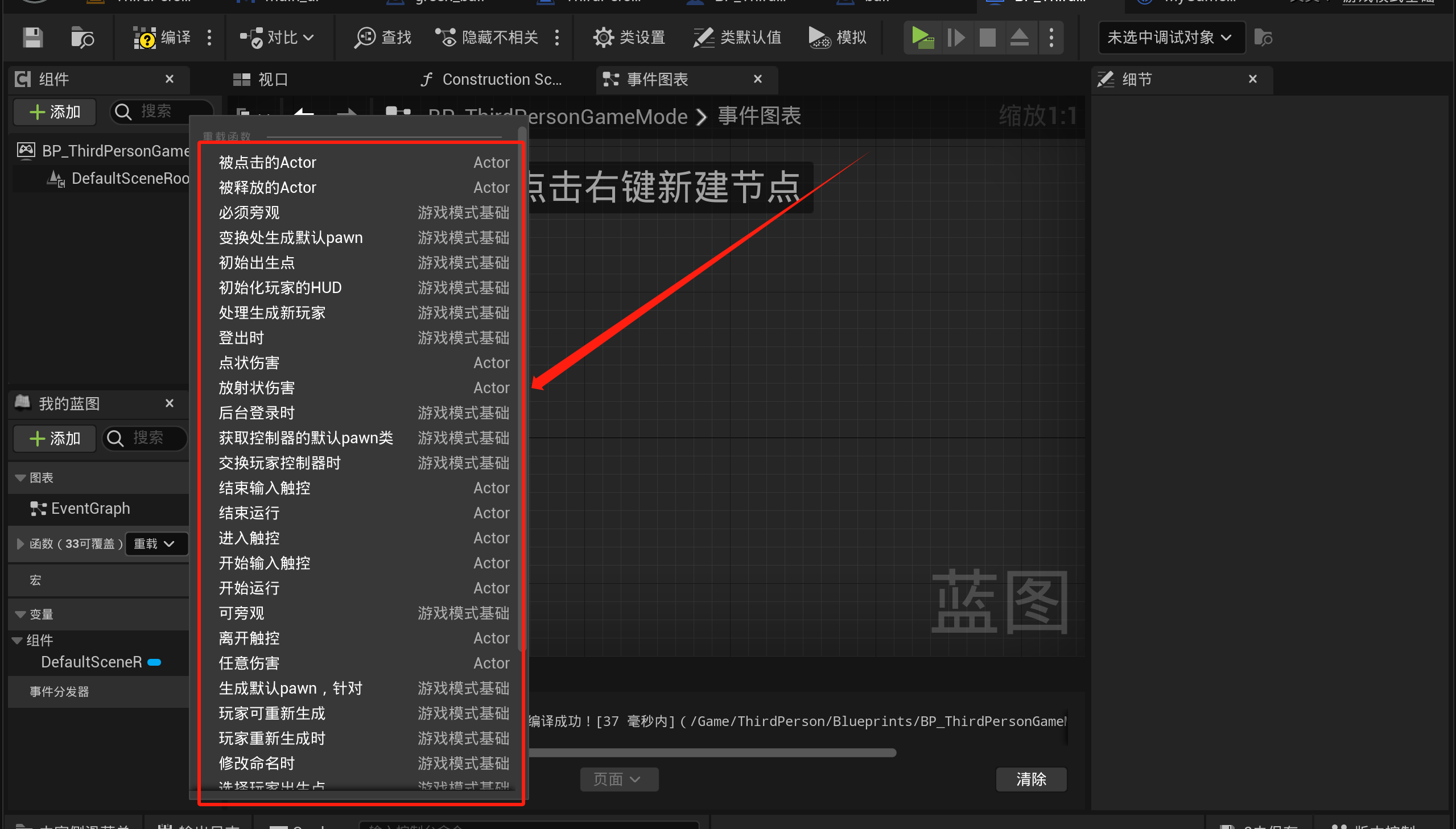 创建事件节点,调用事件,完成绑定以及调用蓝图接口